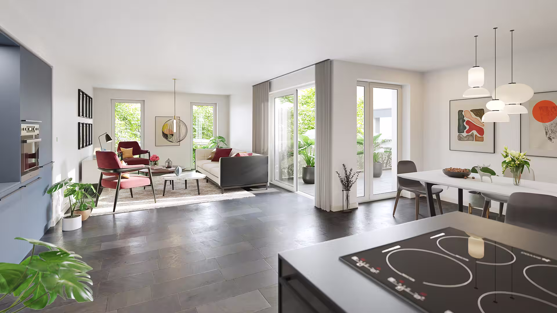 - Viel Freiraum auf großen Balkonen und bis zu 100 m² großen Dachterrassen: fürs Frühstück auf dem Balkon oder Ihr Grillfest im Grünen